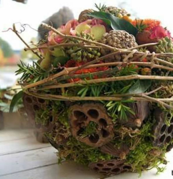 Frans heeft veel verschillende takken met bessen meegenomen en heeft deze verspreid over de tafels. Je kunt het bloeiseizoen flink verlengen met besdragende planten en je krijgt veel meer vogels in de tuin.