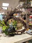 De 14 deelnemende dames maakten een paasstuk van berkentakken, mos en verschillende witte en lila kleurige bloemen.